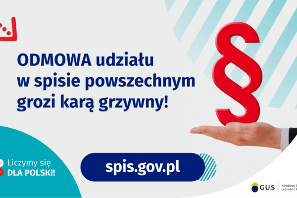 Obowiązek udziału w Narodowym Spisie Powszechnym Ludności i Mieszkań 2021 (NSP 2021) jest nałożony na Ciebie mocą ustawy. Jeśli uporczywie będziesz odmawiać spisania się, grozi Ci kara grzywny w wysokości…