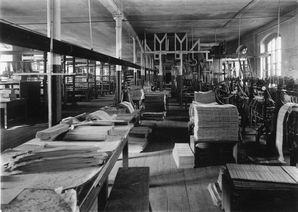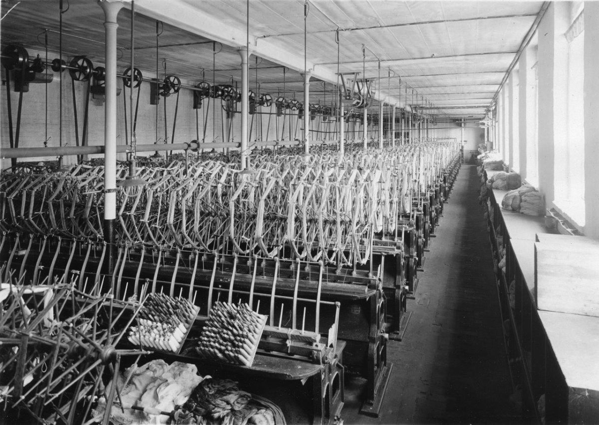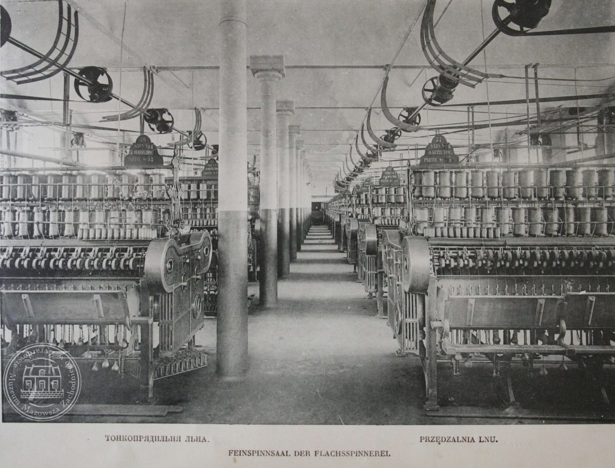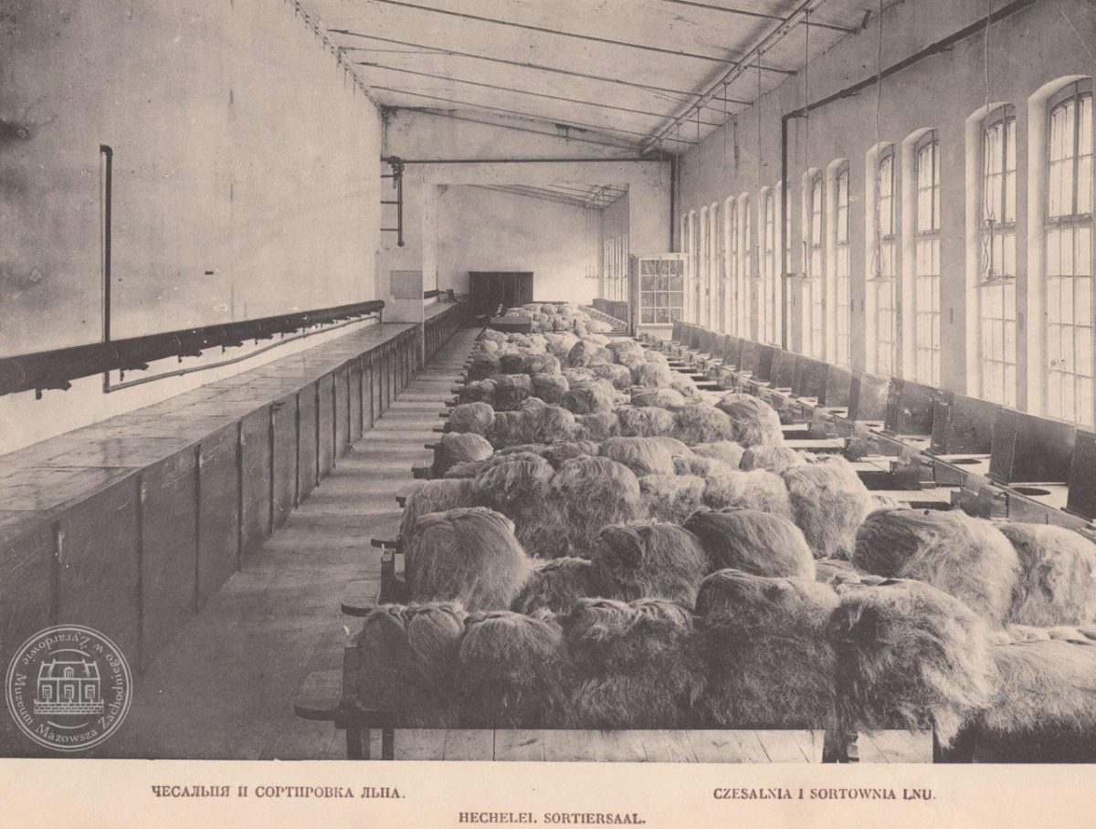 The Rettery was responsible for processing flax straw. Here, it was soaked in order to separate the fibers. The straw was then dried, broken and scutched, which was to separate and remove the woody parts of the stems. The prepared raw material was sent to the Headquarters; first to the hackling shop and then to the spinning mill, where the fibers were turned into linen yarn. Next, the yarn was used to make fabric. The finished fabric was sent to the Bleachery, where it was bleached, dyed and printed with patterns, and then, in the skilled hands of seamstresses, turned into tablecloths, napkins and other linen items.