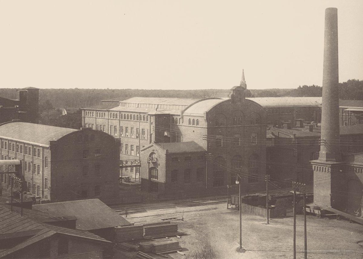 The Headquarters consists mainly of spinning and weaving mills, including the Old Spinning Mill from 1833, one of the first buildings of the Żyrardów factory. In 1861, the first mechanical weaving mill was added to it. The most impressive building is the New Spinning Mill, built in 1912 using the latest construction and fire protection technologies available at the time. It is surrounded by numerous auxiliary buildings, including a yarn hackling shop, a boiler room with a power plant, a carpentry shop, workshops and warehouse buildings.