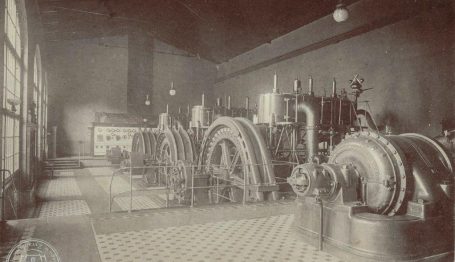 The building was erected before 1893, expanded around 1897. At the beginning of the twentieth century, the building housed a boiler house with two tall brick chimneys added on the outside, an engine room (power plant), a hydrophore room and an industrial water treatment plant. The boilers installed in the boiler house produced steam, which was the main driving force of the Żyrardów Works. Power generators were placed in the power plant. In 1910, the power plant was modernized with the installation of the first steam turbine sets.