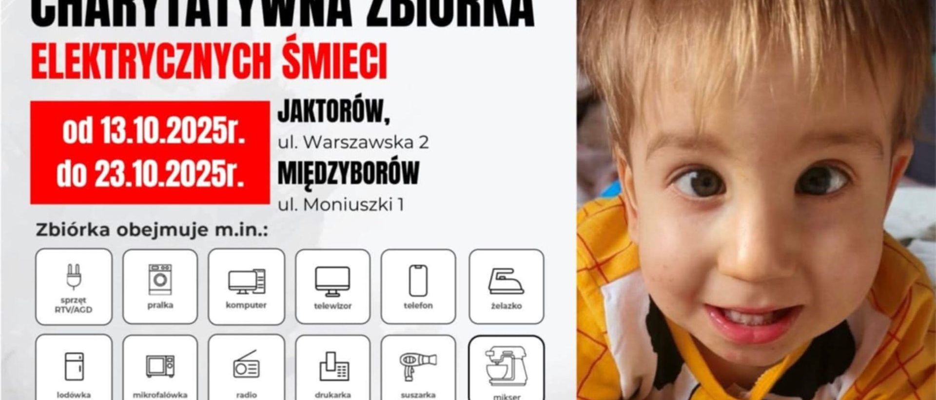 Od 13 do 23 października oddaj zużyty sprzęt elektroniczny w Jaktorowie lub Międzyborowie i wesprzyj dwuletniego Pawełka Pokropka w walce z chorobą. Każdy elektrośmieć ma moc pomagania!