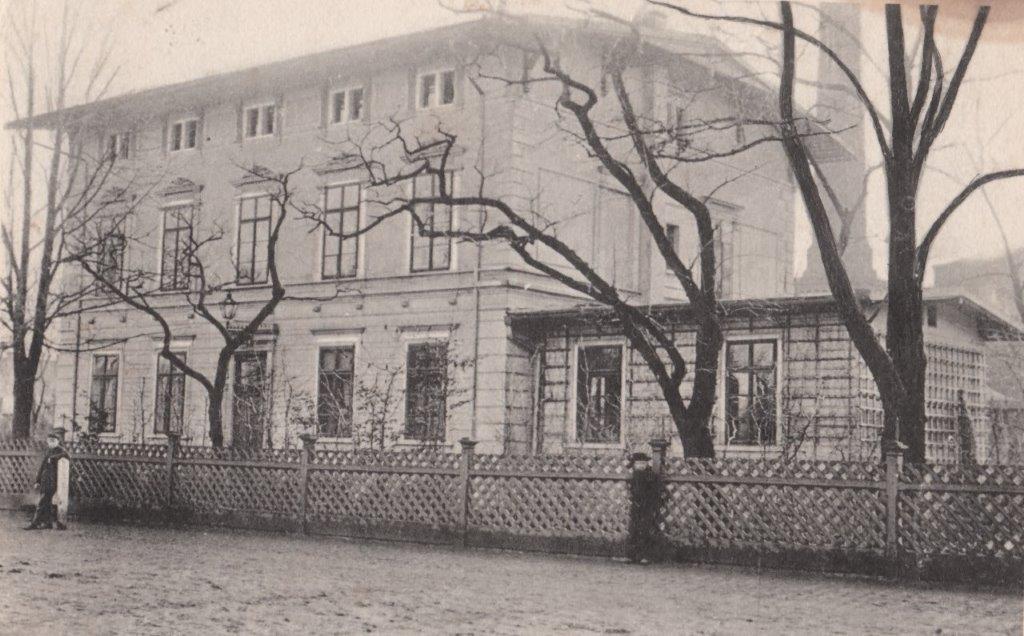 Palace on Limanowskiego Street (formerly Dluga Street). One of the oldest residences of the factory settlement, built before 1867. Its first inhabitant was John Ogden, a British-born director of the flax spinning mill. In the 1870s the Hielle family lived here, then the Dittrich family. In 1881 the Marcellin couple moved into the building: Ludwig – director of the cotton spinning mill with his wife Anna, daughter of Karol August Dittrich. At the back there is a wooden veranda, behind which the garden used to spread. The whole is complemented by a one-story outbuilding (on the right), which housed stables and guest rooms.