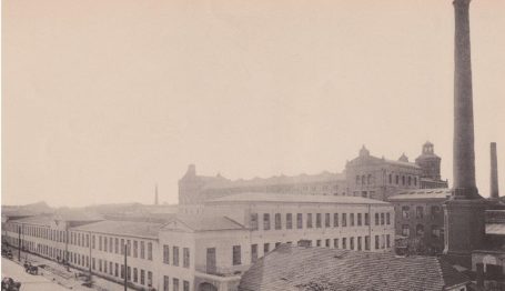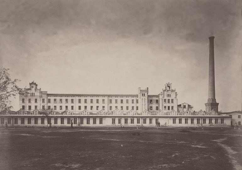 The first mechanical weaving mill in Żyrardów, built in 1858-1861 on the site of a stately garden in front of the Old Spinning Mill building. The largest mechanical weaving mill in Europe at the time. On July 17, 1915, the Russian army withdrawing from the city blew up the building. Rebuilt after the war, the weaving mill was named „Wanda” after the wife of Eng. Władysław Srzednicki, who brought the factory back to life. Adjacent to it on both sides, slightly higher, added over the years, are other weaving mill buildings.