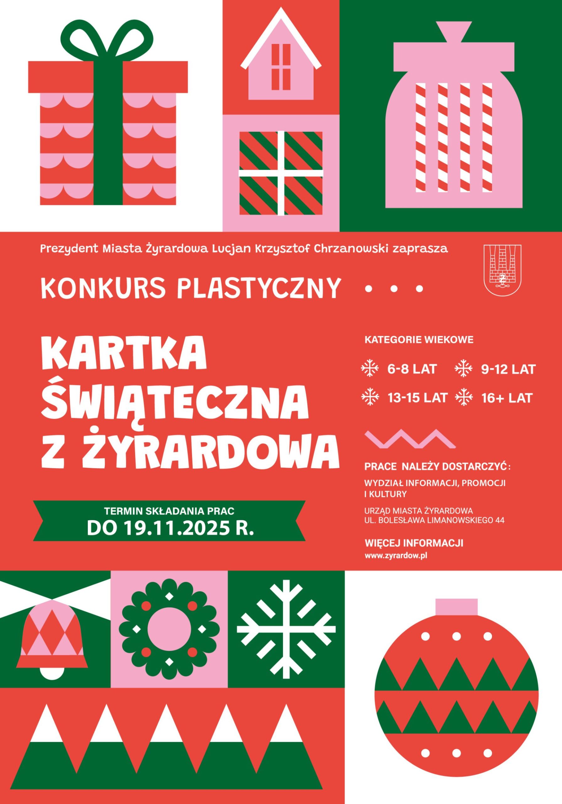 Prezydent Miasta Żyrardowa Lucjan Krzysztof Chrzanowski zaprasza do udziału w konkursie plastycznym ,,Kartka świąteczna z Żyrardowa”. Konkurs kierowany jest do dzieci (od 6 lat), młodzieży i dorosłych, zamieszkałych w Żyrardowie.