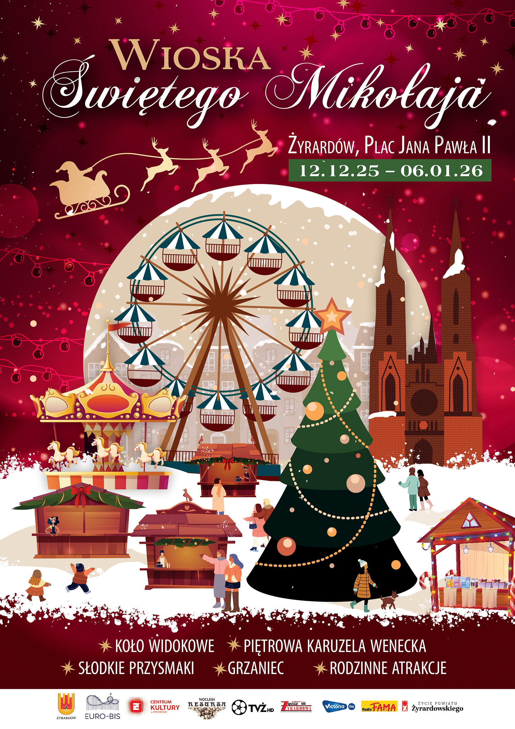 Żyrardów zamieni się w świąteczne miasteczko pełne światła, muzyki i niezapomnianych atrakcji. Już 5 grudnia na Placu Jana Pawła II rozpocznie swoją działalność Wioska Świętego Mikołaja, która potrwa aż do 6 stycznia 2026 r.