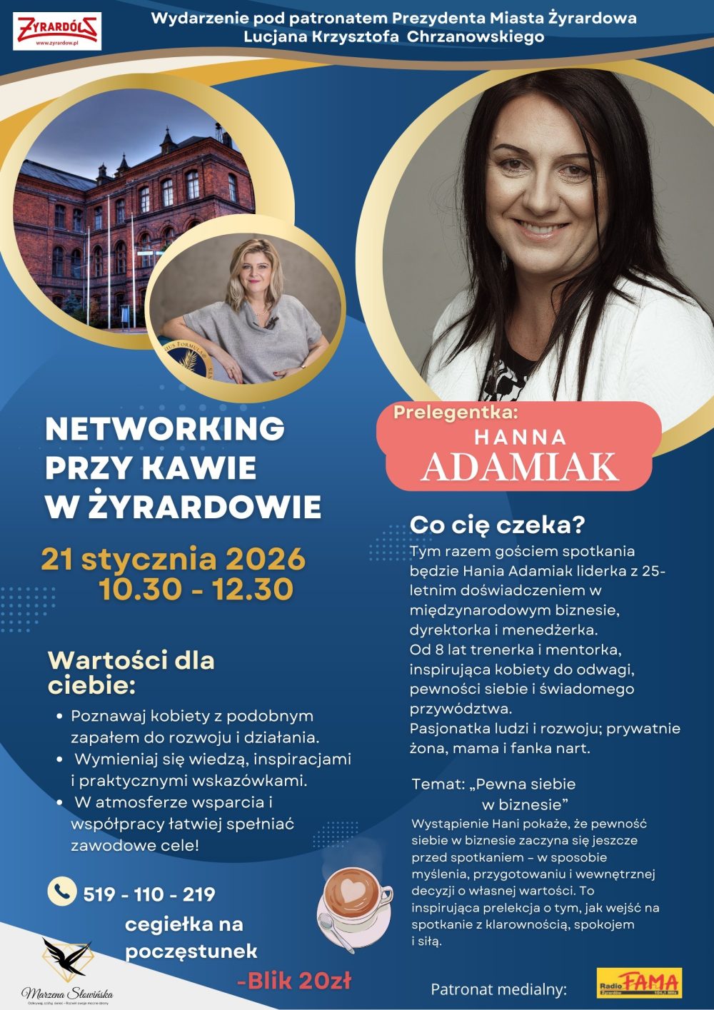 21 stycznia 2026 r.  o godz. 10:30 w roli prowadzącej pojawi się Hanna Adamiak, która poprowadzi inspirującą prelekcję: „Pewność siebie w biznesie zaczyna się przed spotkaniem”.