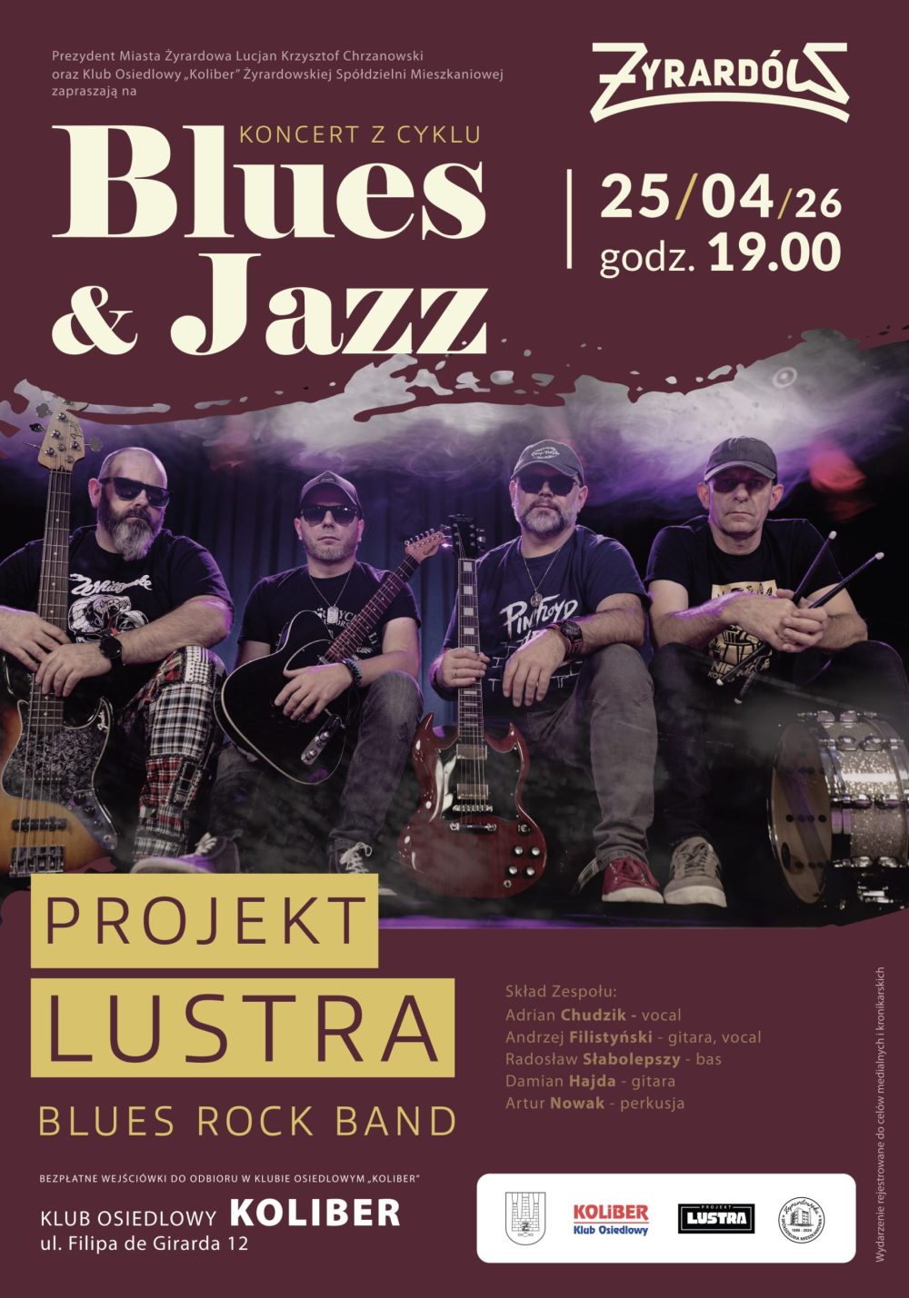 Zapraszamy do Osiedlowego Klubu „Koliber” na koncert zespołu Projekt Lustra, który zagra już 25 kwietnia!